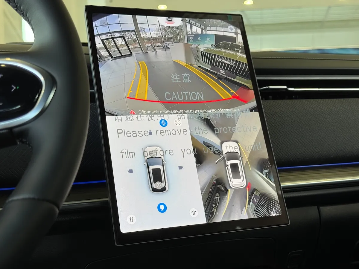 Система обзора 540° (полный круговой обзор + 180° по вертикали) с отображением прозрачного шасси автомобиля позволяет полностью контролировать ситуацию вокруг и под ним. Эта система делает парковку и маневрирование в ограниченном пространстве максимально удобными.