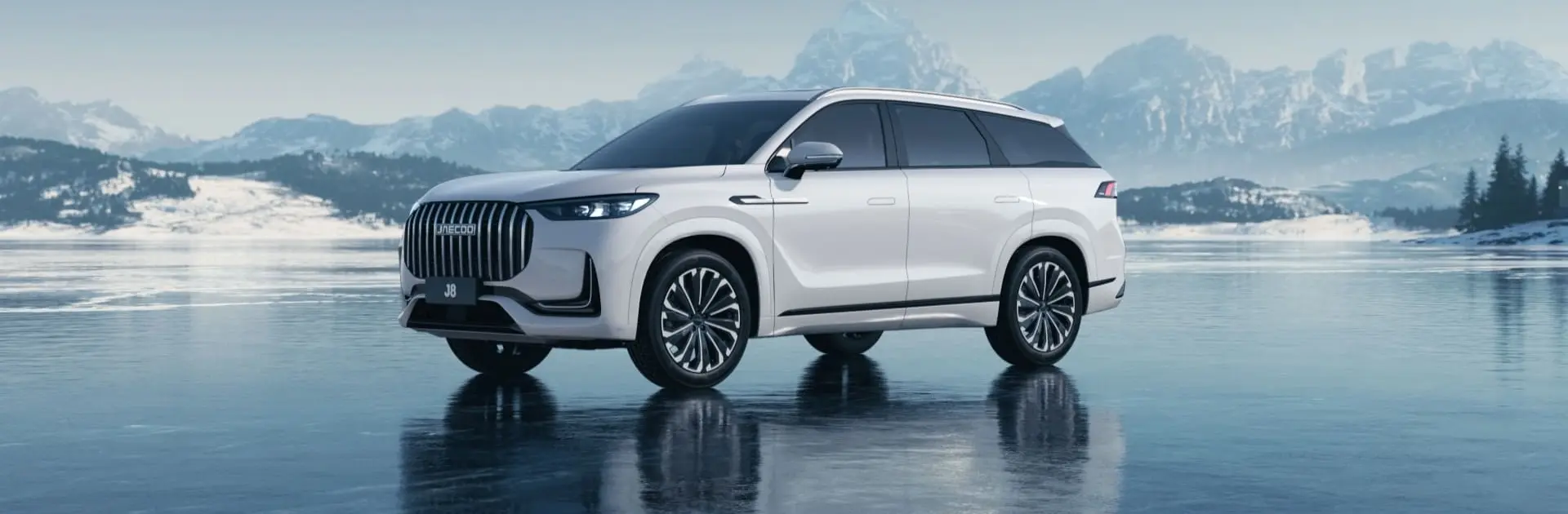 JAECOO J8 — стильный и элегантный кроссовер, который выделяется в городском потоке и уверенно чувствует себя на любом покрытии: асфальте, грунте, снегу или бездорожье. Оснащен технологией TORQUE VECTORING, которая обеспечивает точное прохождение поворотов в любых условиях.