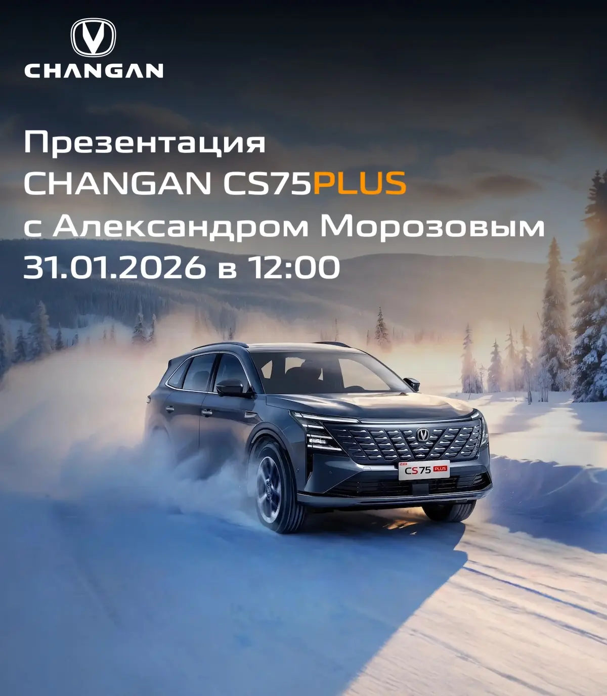 31 января в 12:00 в салоне CHANGAN АЦ ВОСТОК в Березовском состоится презентация нового полноприводного кроссовера CHANGAN CS75PLUS.