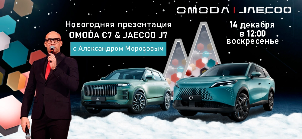 14 декабря в 12:00 в салоне OMODA & JAECOO АЦ ВОСТОК в Березовском состоится новогоднее мероприятие, в рамках которого пройдет презентация новых моделей OMODA C7 и JAECOO J7.